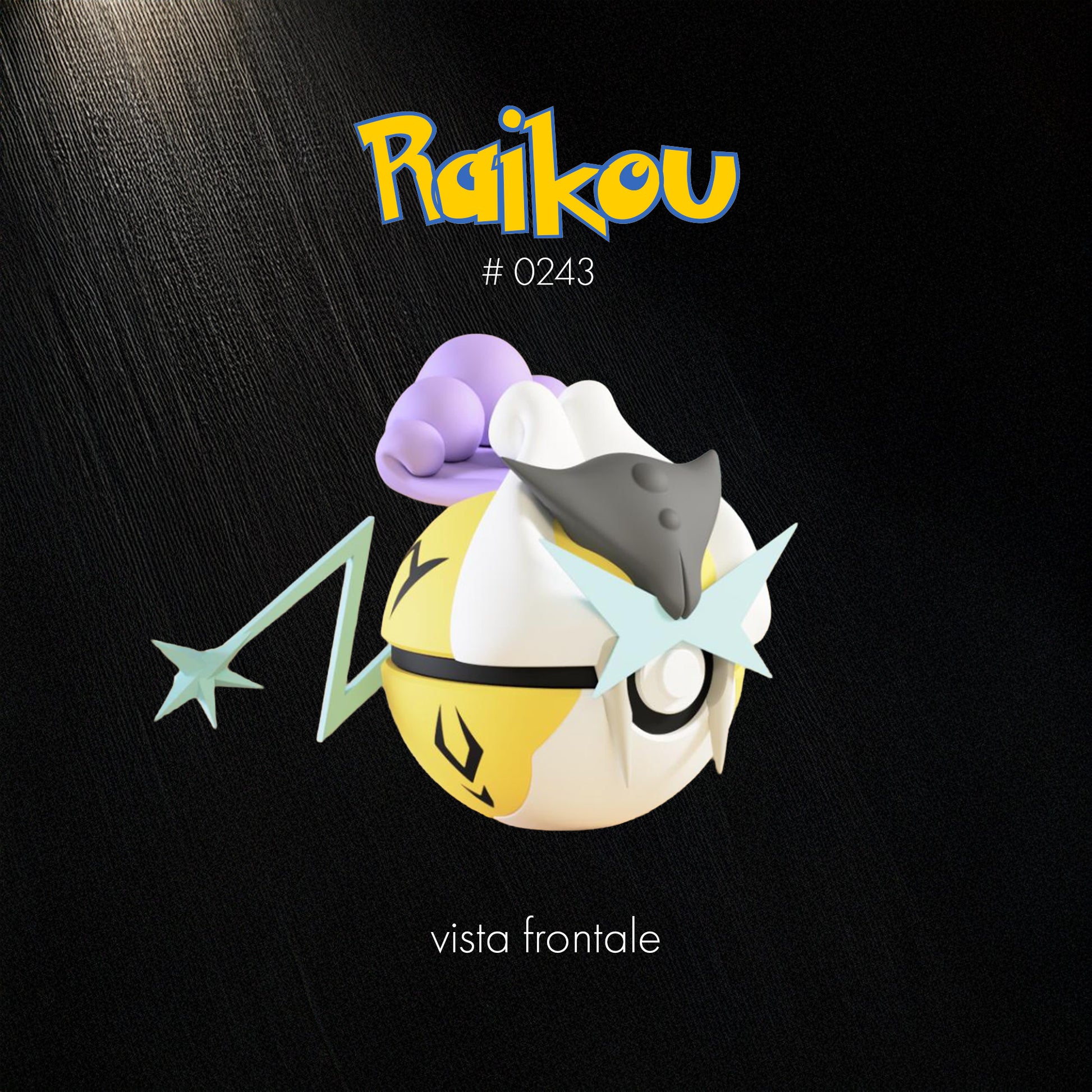 la maschera azzurro ghiaccio, le strisce nere da felino fulmineo, la criniera a nuvola viola e la lunga coda a saetta, elementi che richiamano perfettamente la potenza del fulmine e la regalità del Pokémon Leggendario di Johto.